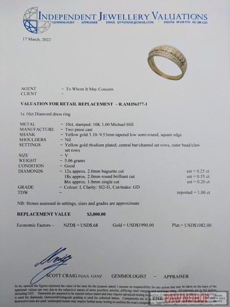 Yes, all our rings come with the pictured valuations.