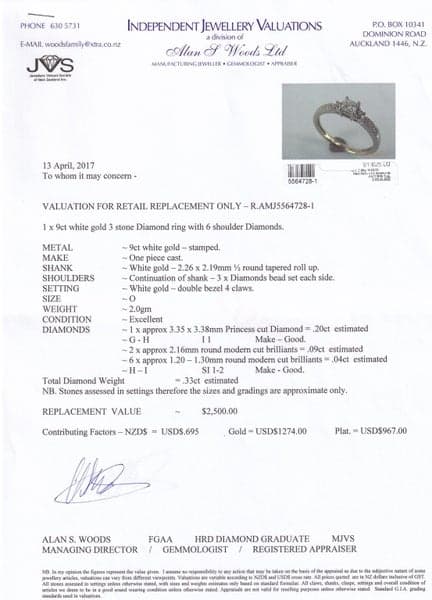 Yes, all our rings come with the pictured valuations.