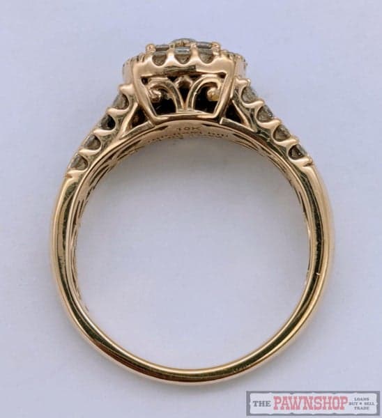 On offer here is a 10ct Yellow Gold Diamond Cluster Ring with shoulder diamonds