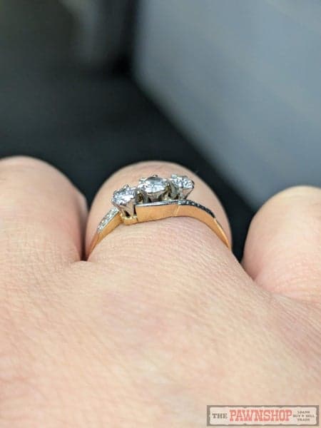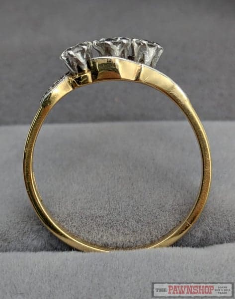 On offer here is a 18ct Yellow Gold and Platinum Three Stone Diamond Ring