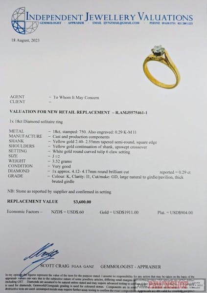 CLEARANCE!!! Solitaire Diamond Ring with 0.29ct TDW in 18ct Yellow Gold $3,600