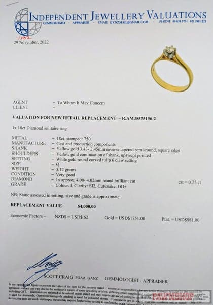 Yes, all our rings come with the pictured valuations.