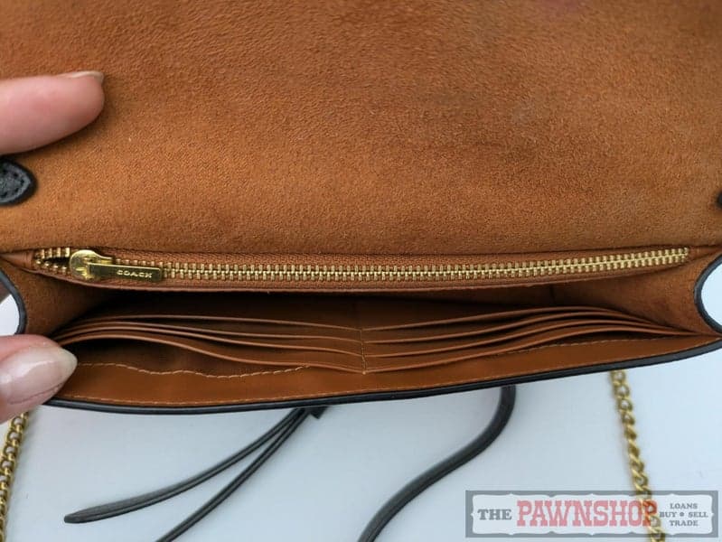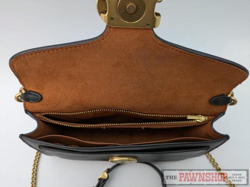 On offer here we have this COACH Polished Pebble Tabby Chain Clutch.