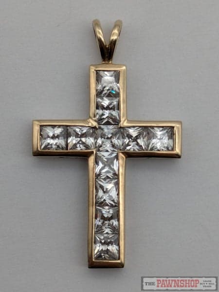 On offer here is a 9ct Yellow Gold Cross Pendant with CZ