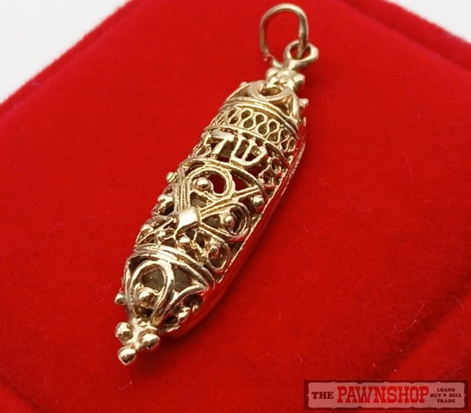 Detailed Filigree Design Mezuzah Charm Pendant in 10ct Yellow Gold 3.70 Grams