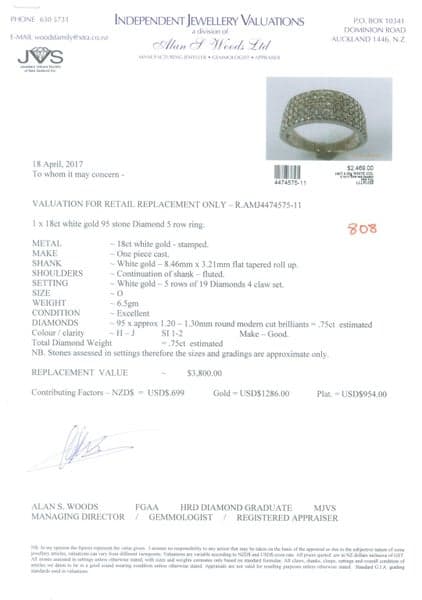 On offer here this 95-Diamond 5-Row 18CT White Gold Ring