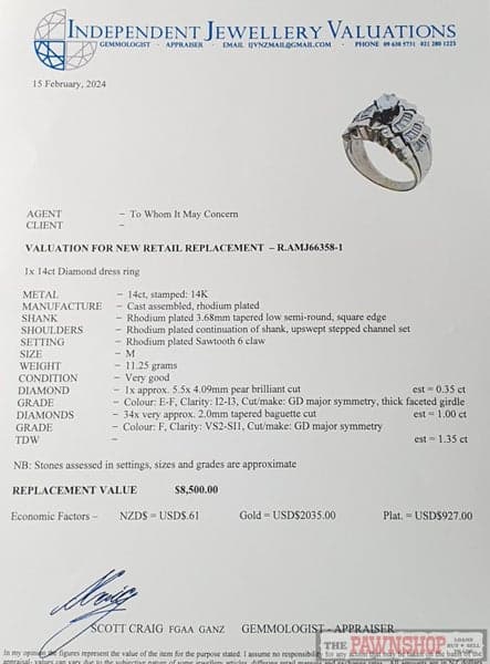 For more details information please see picture of the valuation.