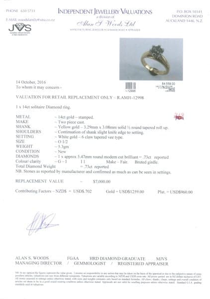 NB: Stones assessed in settings, therefore the sizes and gradings are approximate only.