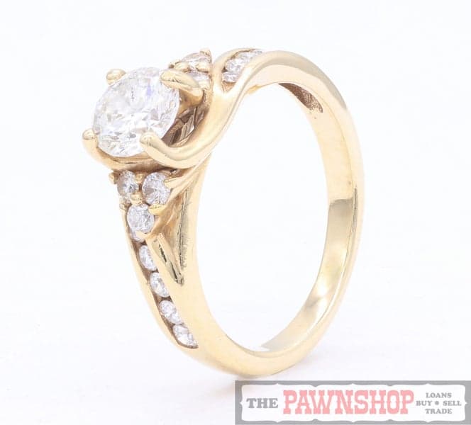 Diamond Solitaire 14CT Yellow Gold Ring w/16 x Shoulder Diamonds