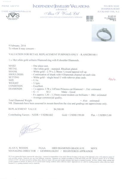 1 x approx. 3.78 x 3.87mm Princess cut diamond = 0.33ct estimated