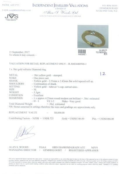 NB: Stones assessed in settings, therefore the sizes and gradings are approximate only.