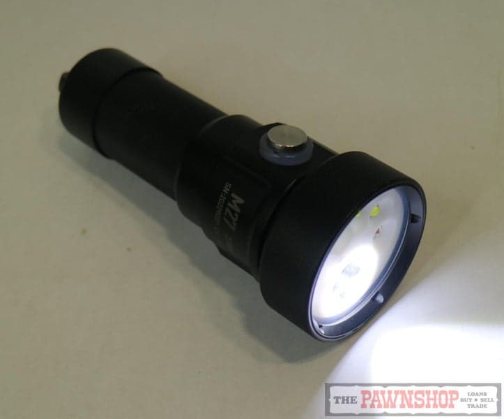 "The Divepro M27 is a very compact multi-purpose dive light with a wide beam for photo/video and a concentrated beam for cave exploration. It has three lighting modes: Wide beam, focused beam and red LED."