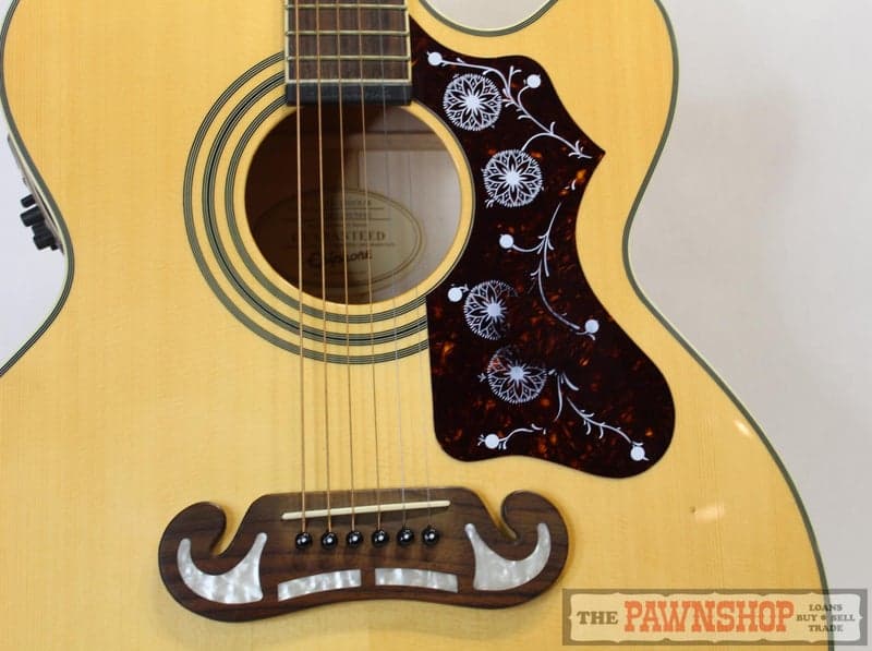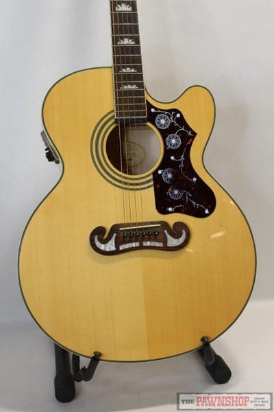 "The EJ-200CE is known as 'The King of the Flat Top Guitars', and is provides a huge sound with plenty of sustain. The back and sides are crafted from maple, which delivers a beautifully bright sound that dominates in the mid and treble ranges. The maple is topped with solid spruce which enhances the tone with crisp highs and tight lows, to create an overall balanced sound packed with plenty of punch."