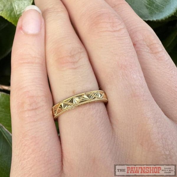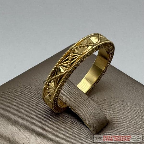 On offer here is a Filigree Jewellers 18ct Yellow Gold Patterned Band Ring.