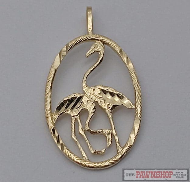 On offer here is a 14CT Yellow Gold Flamingos Pendant