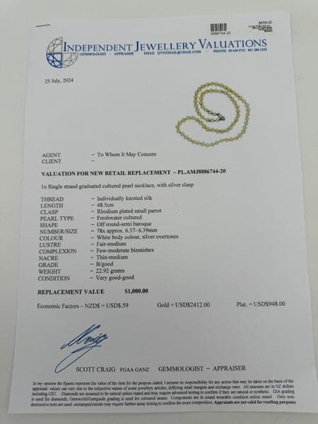 On offer here is a Sterling Silver Cultured Pearl Necklace.