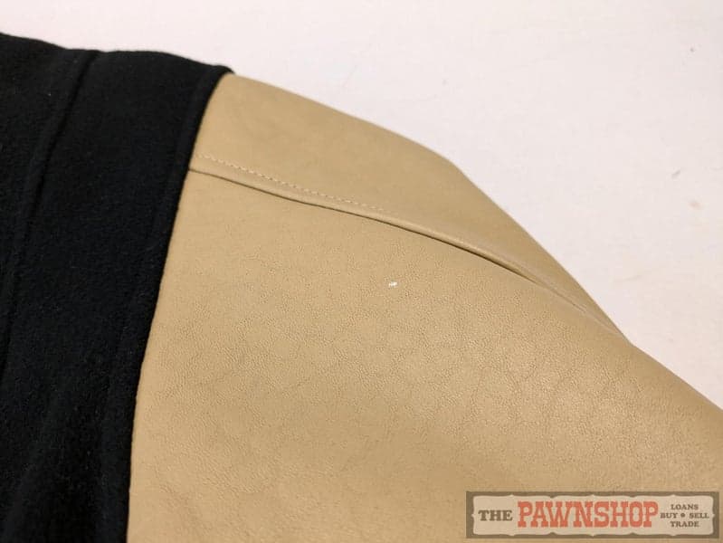 Two front welt pockets, also accented with tan trim.