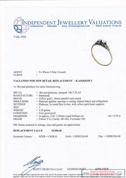 Diamond = 2x 0.30ct estimated