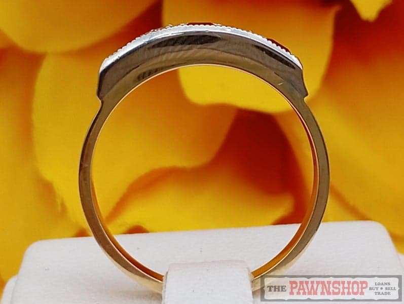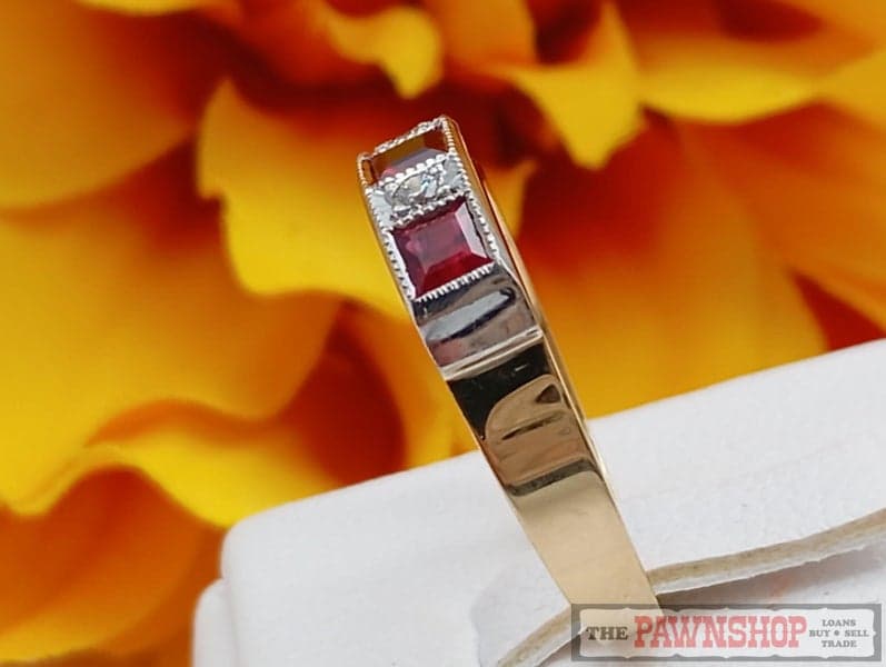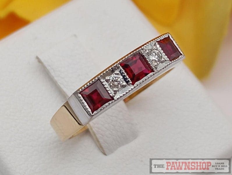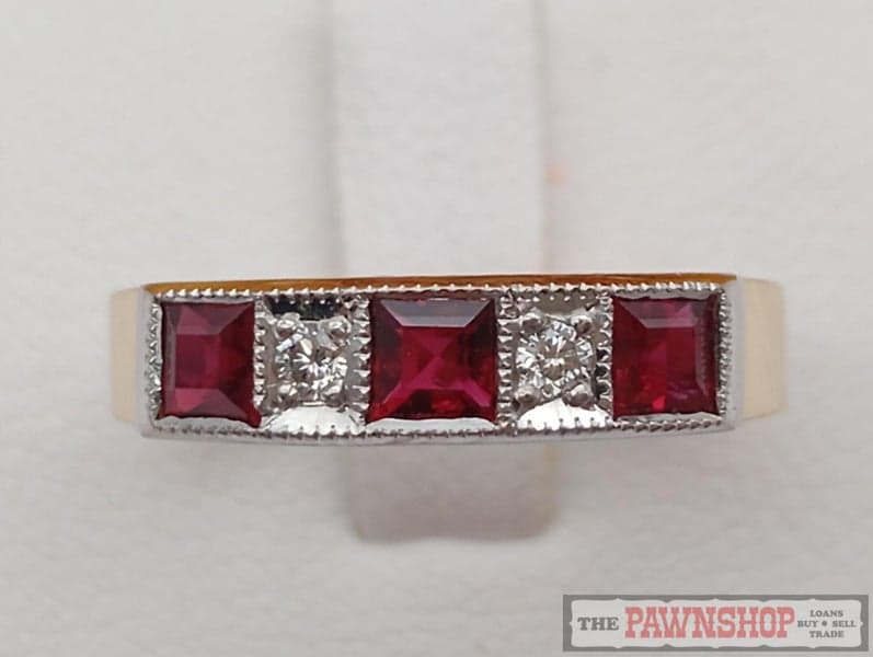 On offer here is a 18ct Yellow Gold Rubies and Diamond Dress Ring