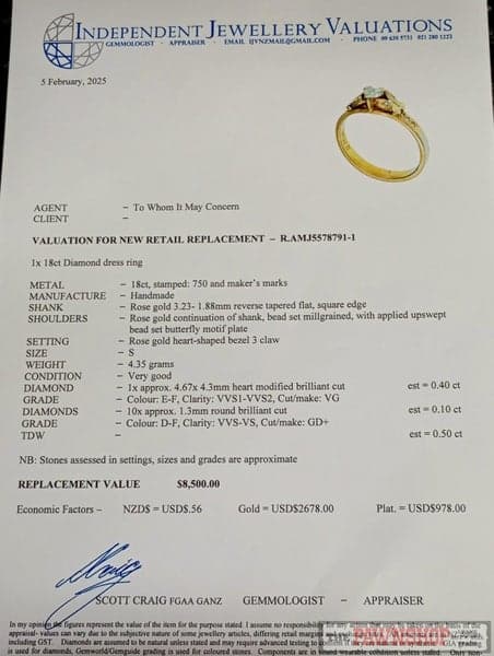 Yes, all our rings come with the pictured valuations.