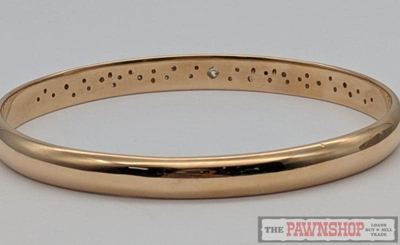 On offer here is a Handmade 9ct Yellow Gold Diamond Set Golf Bangle