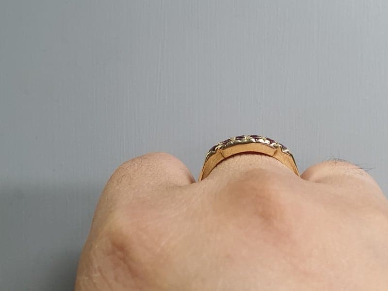 On offer here is a 18ct Yellow Gold Handmade Ruby and Diamond Dress Ring