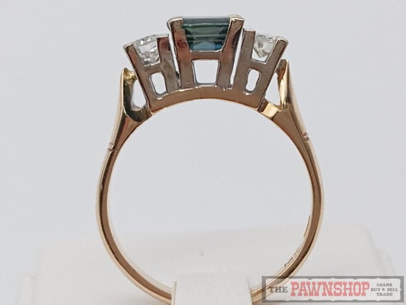 On offer here is a 14ct Yellow Gold Sapphire and Diamond Three Stone Ring