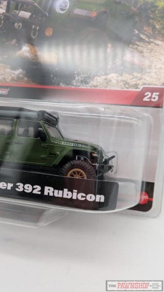 "Conquer any terrain in miniature form with the 2025 Hot Wheels Jeep Wrangler 392 Rubicon in rugged green. This 1:43 scale die-cast model captures the raw power and off-road dominance of the V8-powered Wrangler 392 — the most powerful Wrangler ever built.