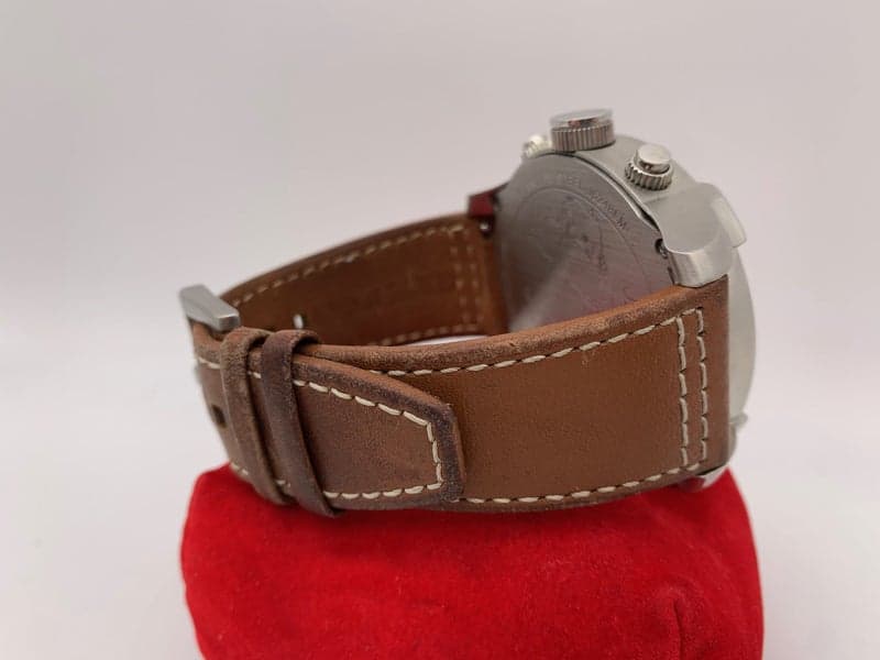 This JBW watch features a stainless steel fixed bezel with 16x genuine diamonds, cream /silver chronograph dial, quartz movement, brown calf leather strap.