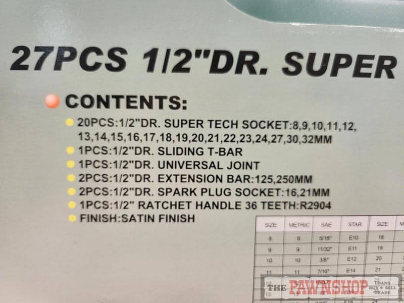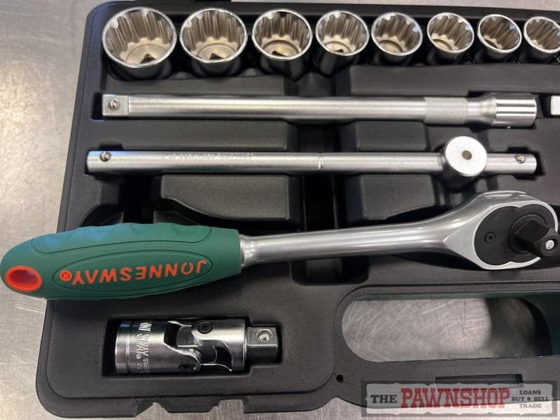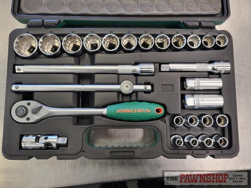 On offer here is this Jonnesway 27pcs 1/2" Drive Super Tech Socket Set. The socket set is presented in good used condition with minimal wear as pictured.