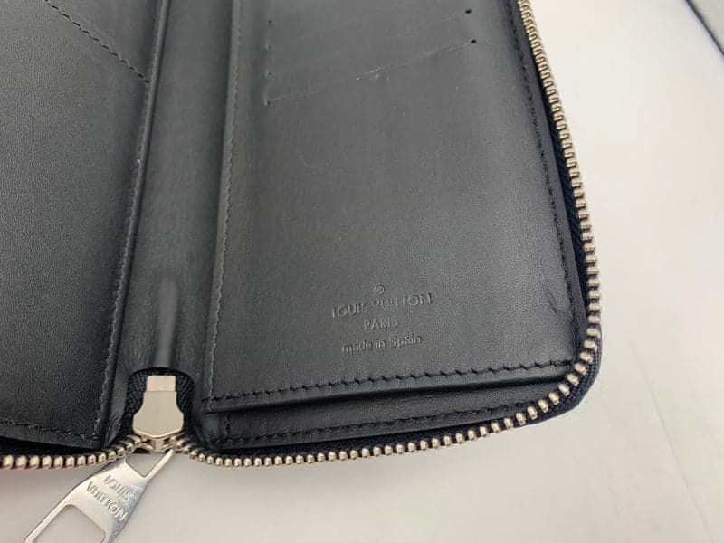 Condition: Scratches on zipper, creasing on leather interior.