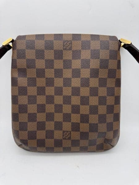 Authentic Louis Vuitton Musette Salsa PM in the timeless Damier Ebene canvas. This is a classic, discontinued piece that is highly sought after for its elegant design and practical shape. It's the perfect everyday bag, lightweight and comfortable for shoulder or crossbody wear.