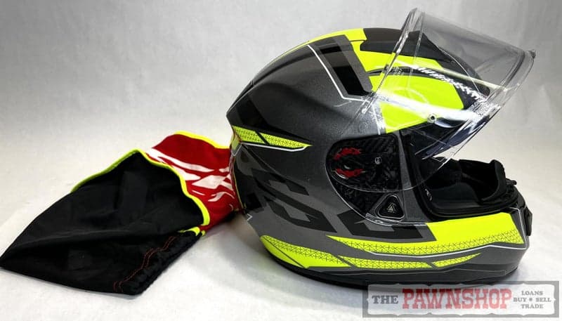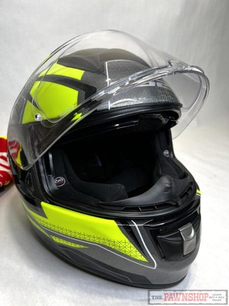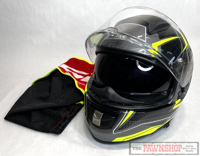 In great condition, both the clear visor and sun visor are quite clean as pictured. Comes complete with soft bag. Manufacture date is listed as April 2019.