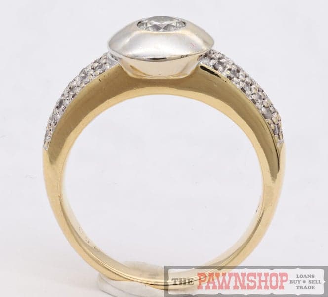 On offer here is an 18ct White and Yellow Gold Solitaire Ring with 36 Shoulder Diamonds