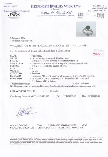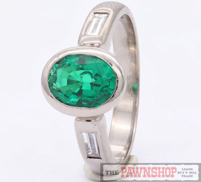 On offer here is an 18ct White Gold Emerald and Diamond Ring With 2 Diamonds.