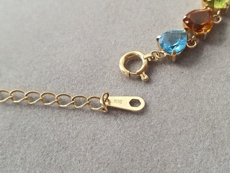 On offer here is a 18kt Yellow Gold Multi-Coloured Stone Bracelet