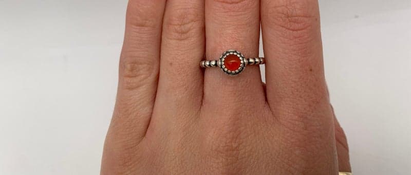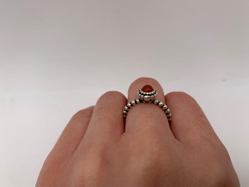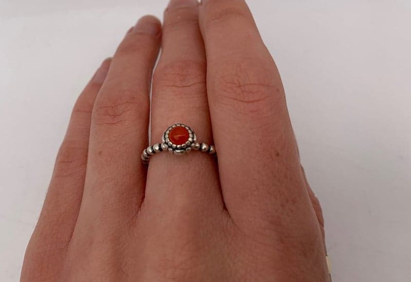 Pandora July Birthday Blooms Carnelain Ring ~ Size 52