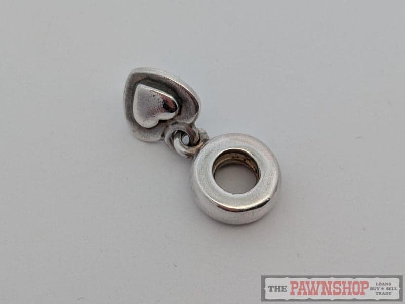 "Celebrate love in its purest form with this authentic Pandora Sterling Silver Heart Drop Dangle Charm. Expertly crafted from solid 925 sterling silver, this retired charm features a smooth, puffed heart pendant that swings gracefully beneath a polished Pandora bail.
