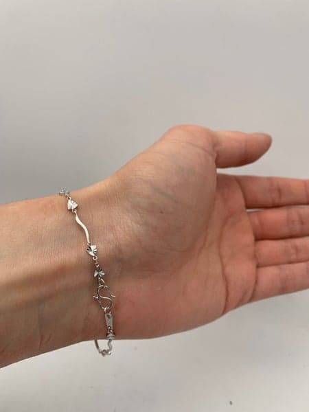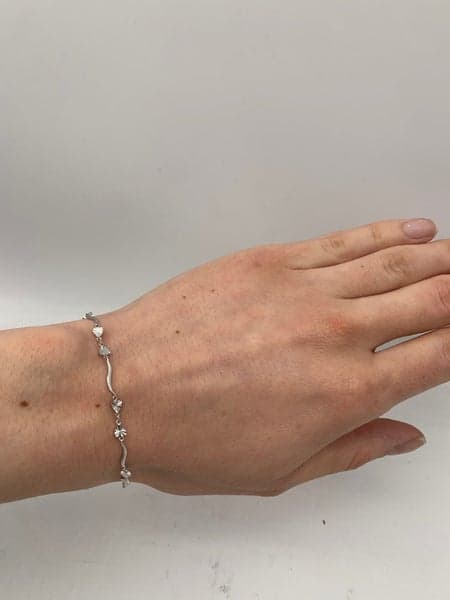 This bracelet features an alternating fancy link with a platinum "S" hook clasp.