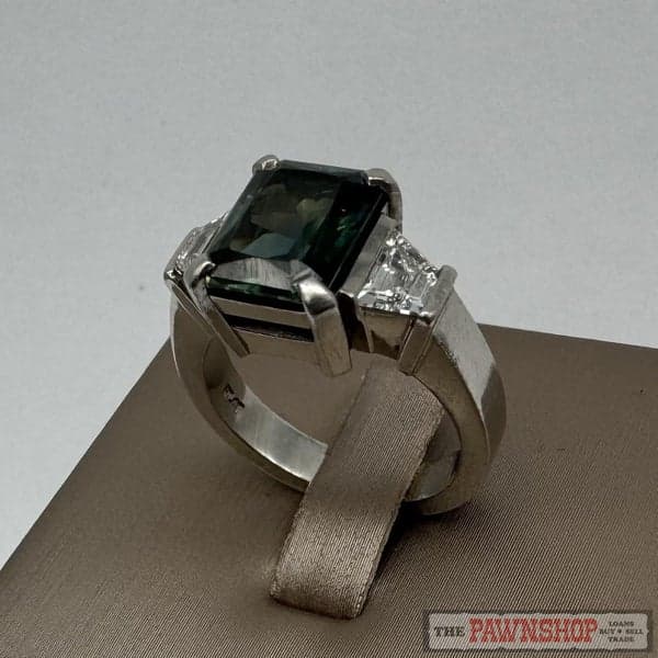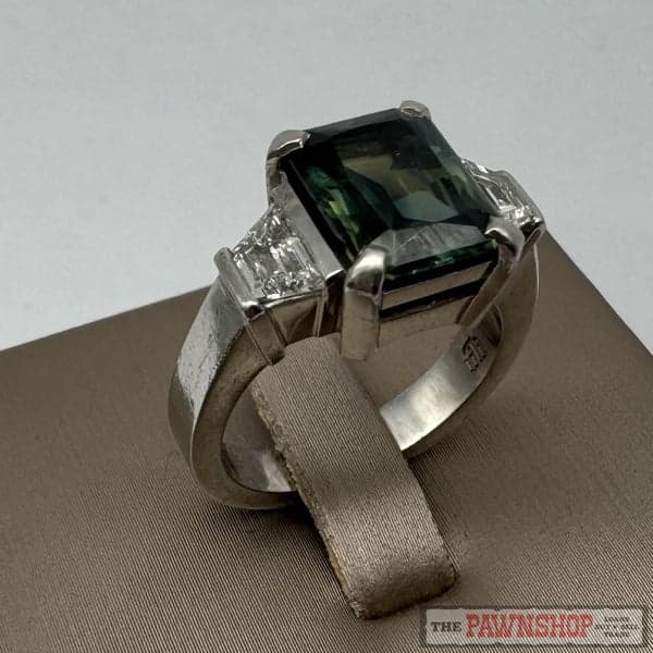 On offer here is a Platinum Sapphire & Diamond Ring