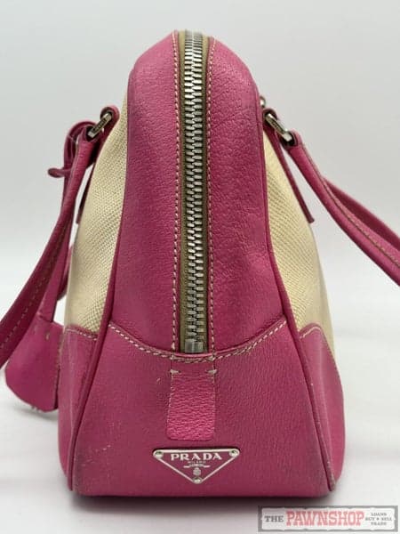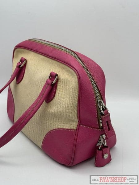 On offer here is an Authentic Prada Bowling Bag Pink Leather & Canvas