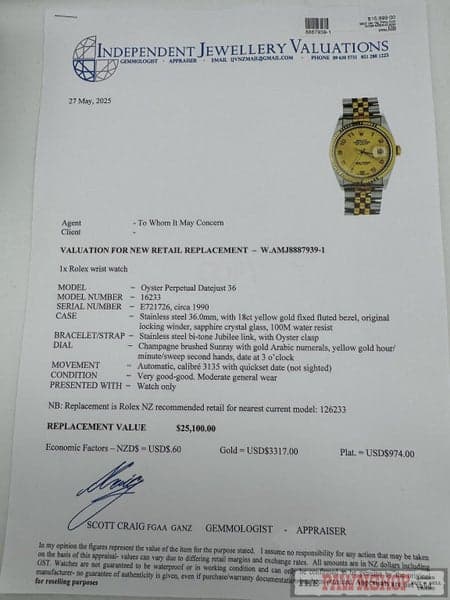 This watch features a 36mm stainless steel case with an 18ct yellow gold fluted bezel, original locking winder, sapphire crystal glass, stainless steel & yellow gold Jubilee link with Oyster clasp. The movement is an automatic calibre 3135 with quickset date.