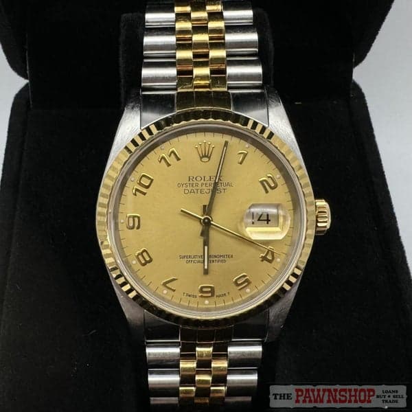 On offer here is a Rolex Oyster Perpetual Datejust 36mm Yellow Gold & Stainless Steel Watch