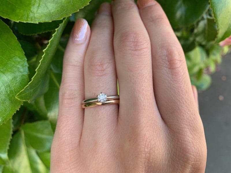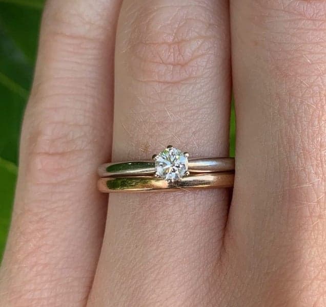 This ring features an 18ct white gold solitaire diamond ring with a matching 14ct rose gold band.