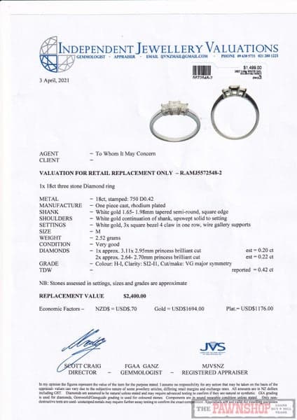 SALE!!! 0.42ct TDW Three Stone Diamond Ring in 18ct White Gold $2,400