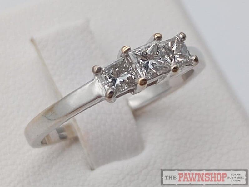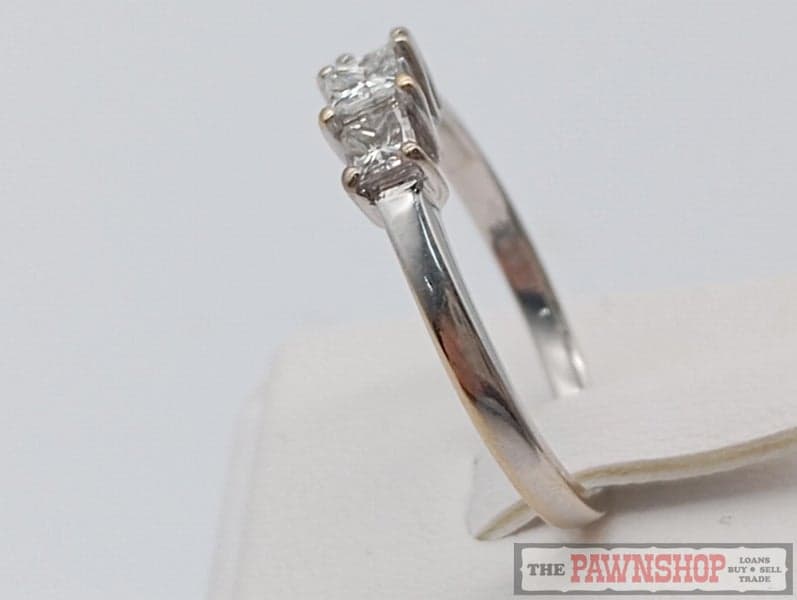 On offer here is a 18ct White Gold Three Stone Diamond Ring