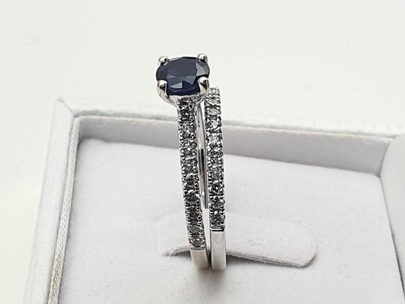 On offer here is an 14ct White Gold Sapphire and Diamond Bridal Ring Set