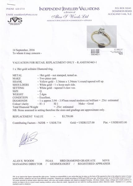 Yes, all our rings come with the pictured valuations.