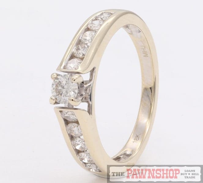 On offer here is an 18ct White Gold Solitaire Diamond Ring with 10 Shoulder Diamonds.