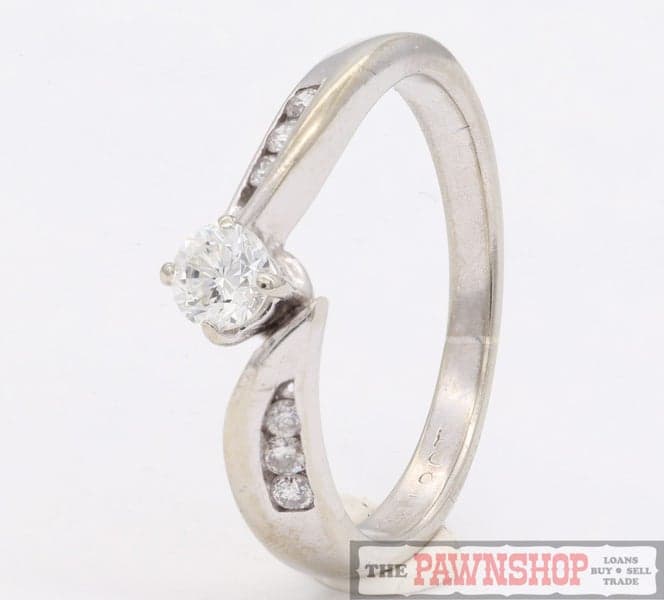 On offer here is an 9ct White Gold Solitaire Diamond Ring with 6 Shoulder Diamonds.
